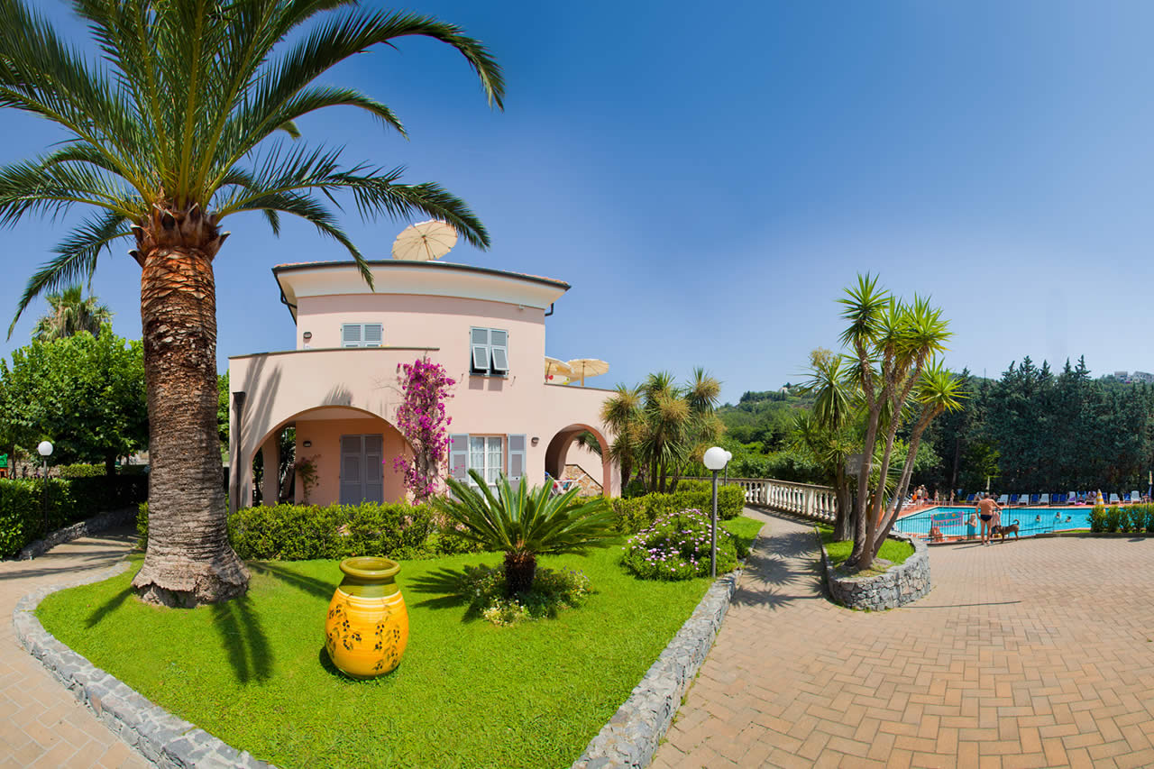 The other, Villa Luciana, is located in a central position overlooking the pool and has two-room apartments with garden and others with sunny terrace, all equipped with tables and chairs to outdoor dine and enjoy Liguria beautiful summer and spring days.