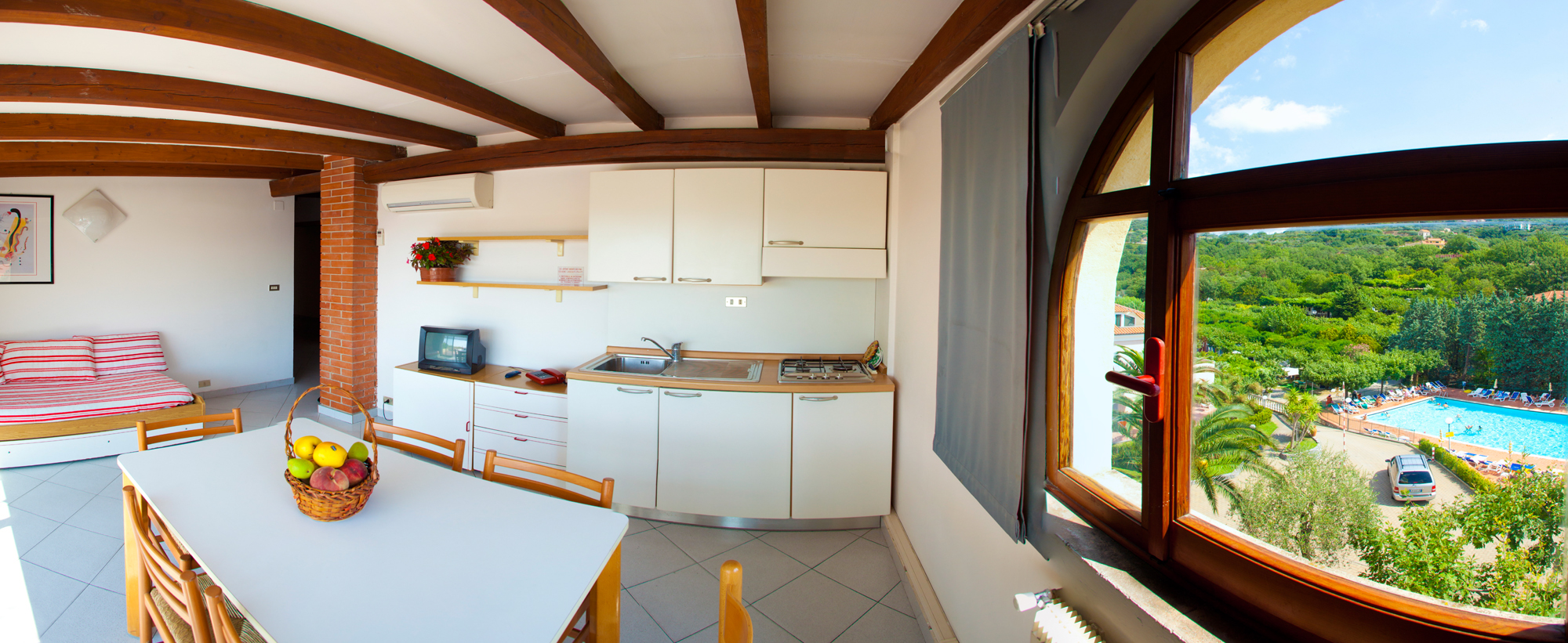 At the main entrance of our Village, the two Residence buildings, one of which with lift and conveniently located near all facilities, offer our guests apartments studios with 3 or 4 beds and two-room apartments from 4 to 6 beds, with terrace / balcony or garden with fully furnished kitchenette and equipped with television, safe, telephone and some with air conditioning.